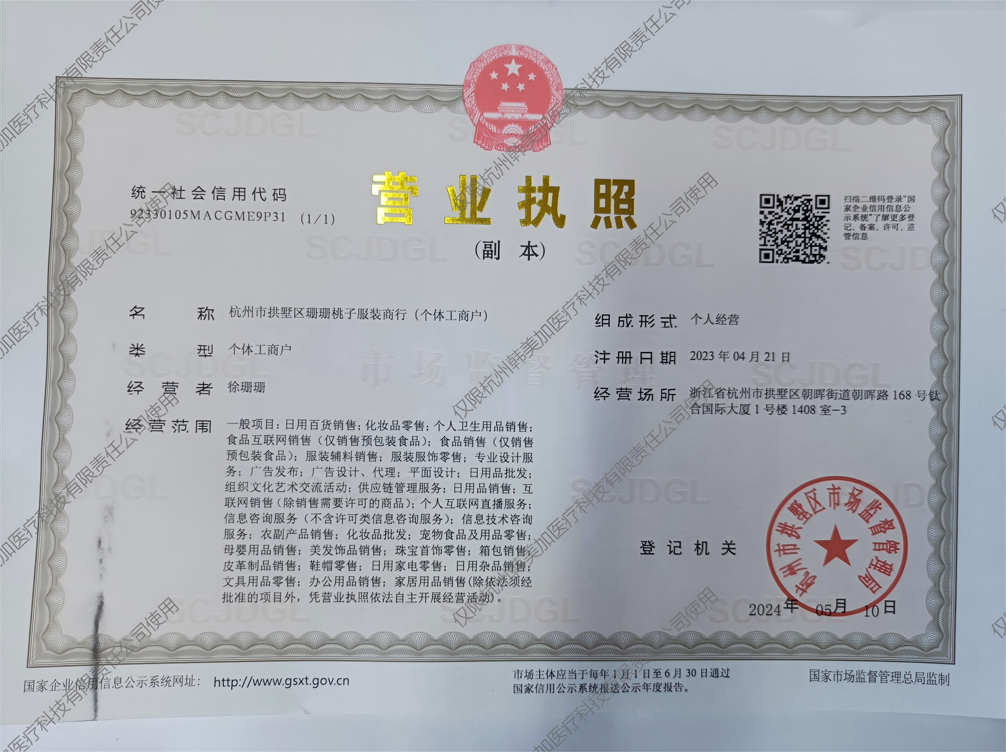 杭州市拱墅区珊珊桃子服装商行(个体工商户)